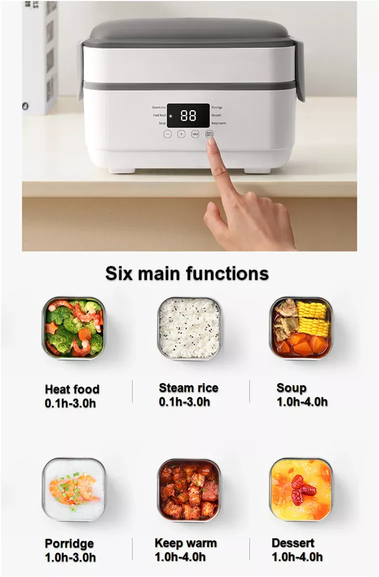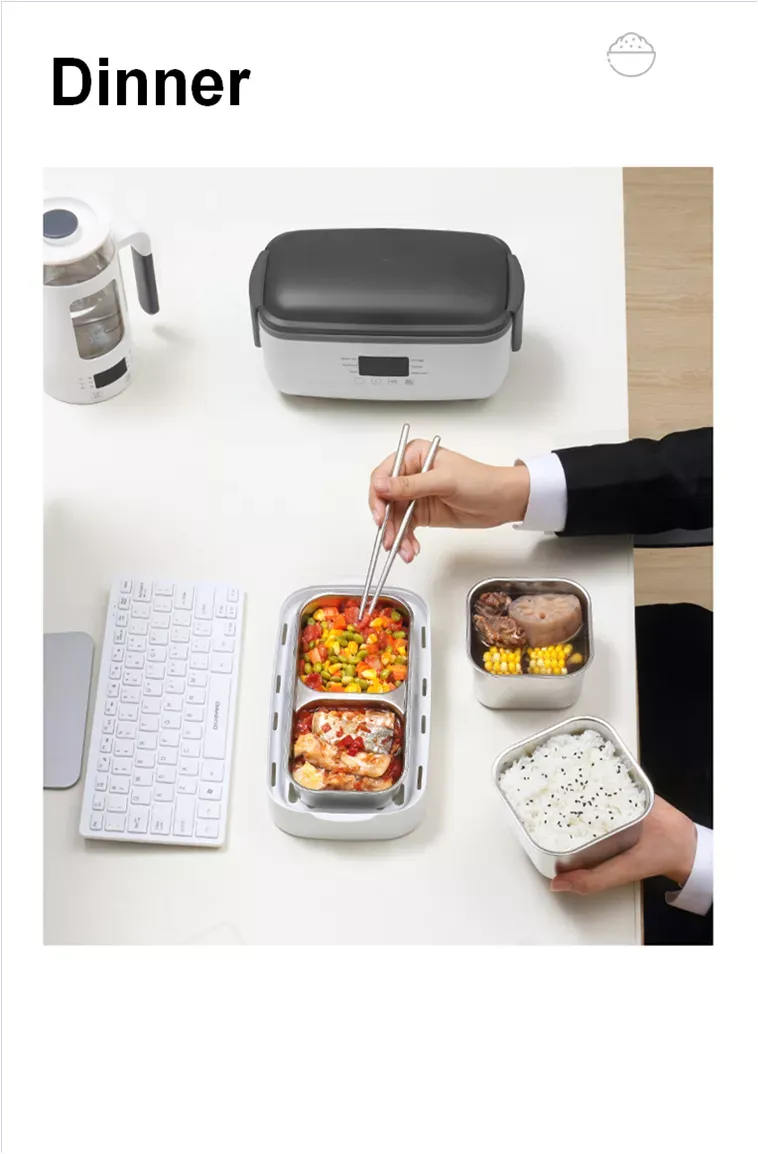 The bento-style electric heating lunch box combines the functionality of a traditional bento box with the convenience of electric heating. These lunch boxes are typically divided into multiple compartments for different types of food, and they are designed to keep your meal well-organized and fresh. The bento-style lunch box is perfect for those who enjoy packing a variety of dishes and want to keep them separate while still being able to heat them on the go.