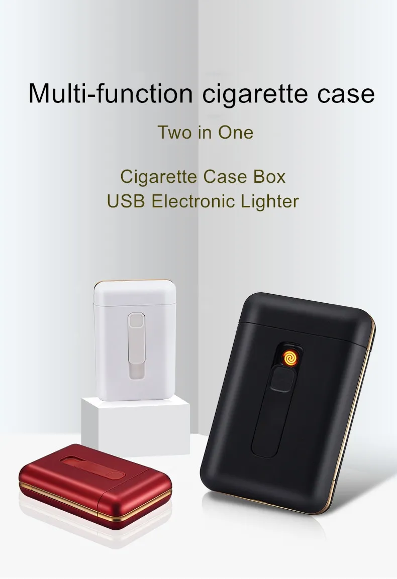 20 Piece Cigarette Case with USB Cigarette Lighter Electronic Cigarette Lighter for Regular Cigarette Gadgets for Men