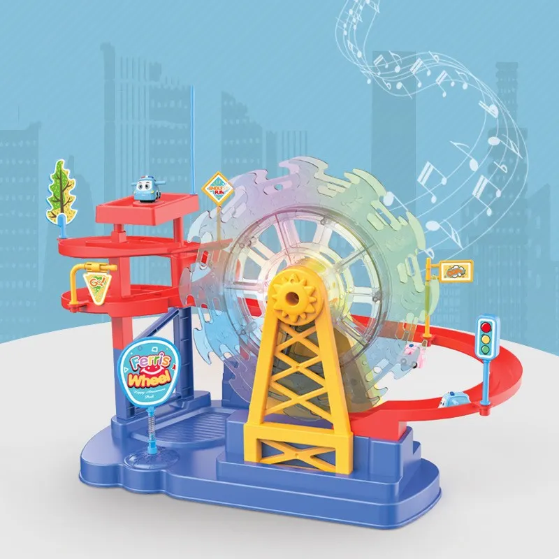 This toy features built-in music and light effects that add an exciting visual and auditory experience for children. As the track slide operates, the colorful lights flash and dance to the rhythm of the music, creating a vibrant atmosphere. The combination of sound and light stimulates the child’s sensory development and adds extra fun to their playtime.