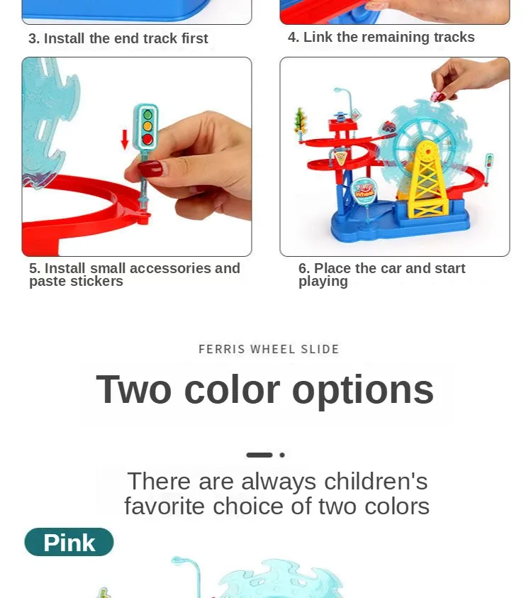 By interacting with the track slide, children can develop imagination, problem-solving skills, and creativity as they design their own sliding paths and play scenarios. Whether they are imagining a race or creating their own mini amusement park, this toy encourages open-ended play and fosters cognitive development.