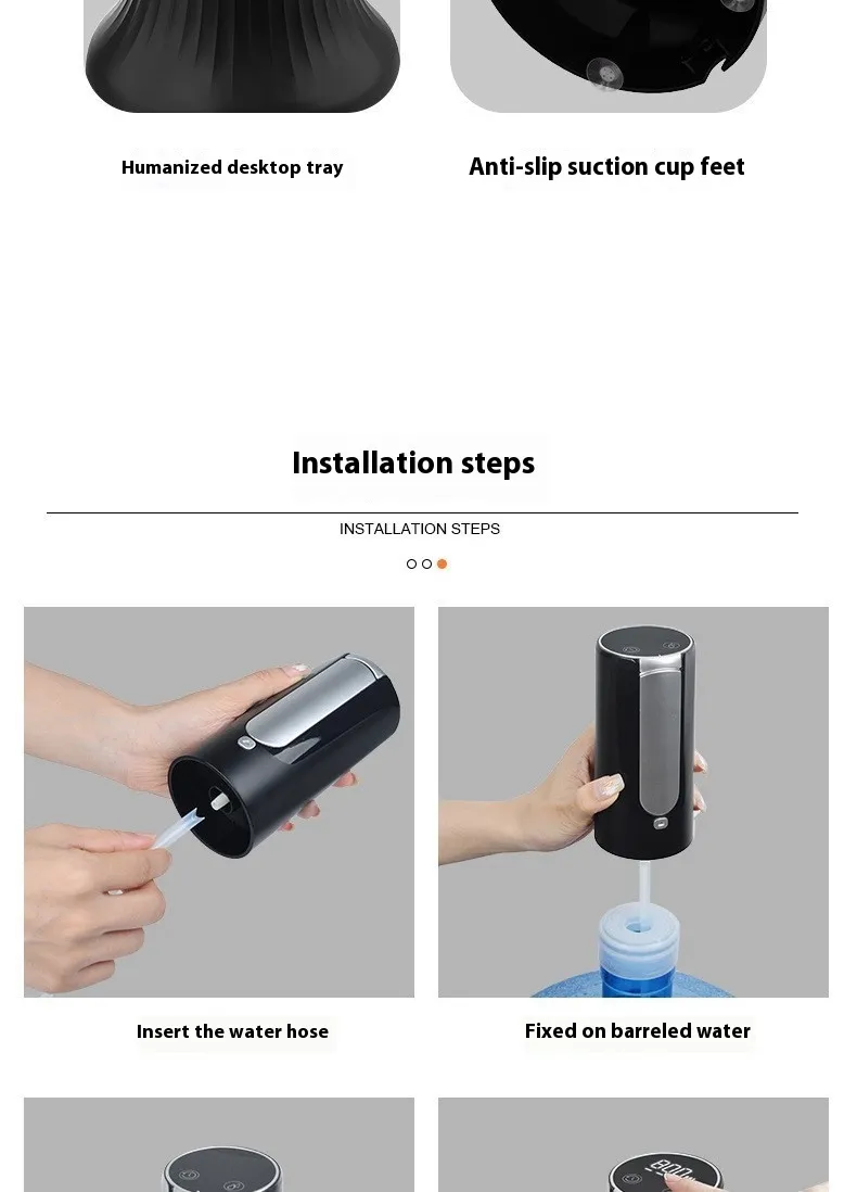 Designed to fit most standard water bottles and jugs with a secure mounting system for stable operation. Installation requires no tools and