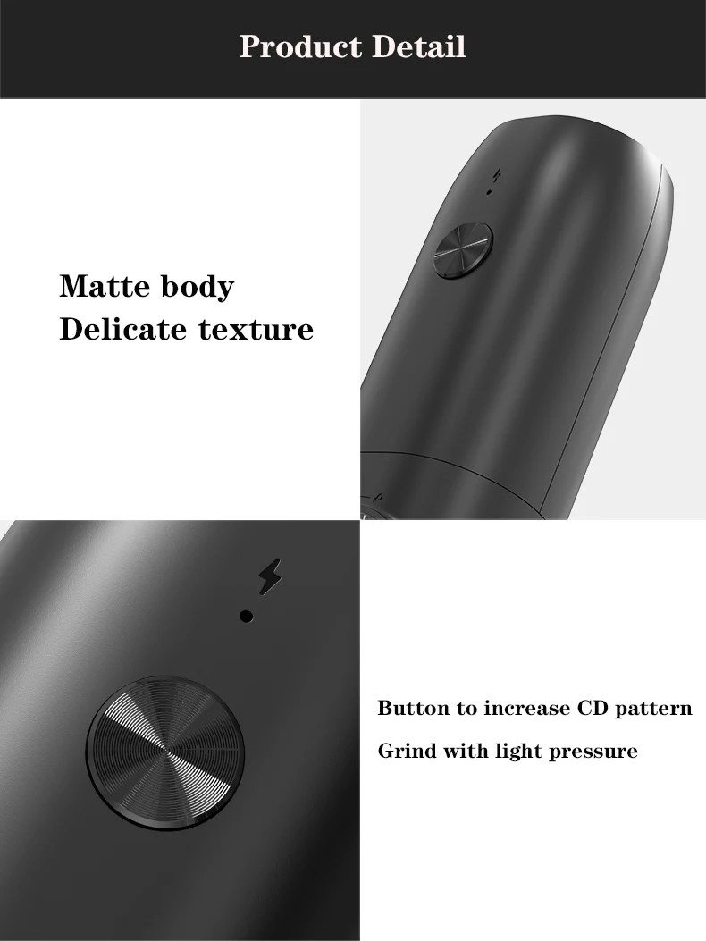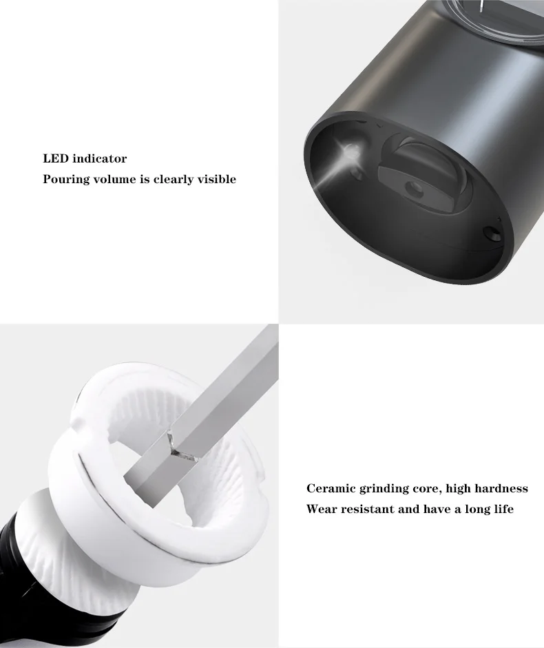 Only one button, then you can use the black pepper grinder for your cuisine or meal. Press to start and release to stop. Especially friendly to the young, the elder, those who suffer from wrist pain or is busy preparing dinner. The light weight(only 0.44 lb) enables you to carry the salt grinder everywhere. The white LED light will automatically turn on when the spice grinder electric is working to prevent from over-seasoning of your bean, herb, spice, cumin.