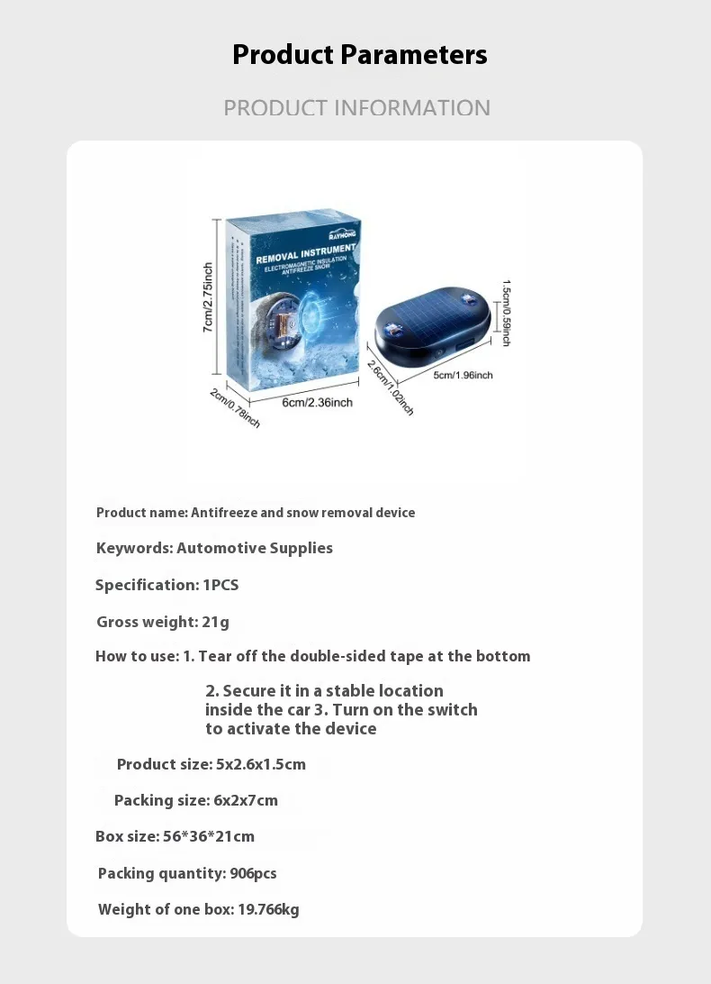 The Electromagnetic Anti-Freezing Device is crafted with powerful, safe internal components that generate a field strong enough to prevent ice buildup on your glass, even in heavy frost. It features silent operation that works while you sleep, ensuring your car is too convenient to ignore.