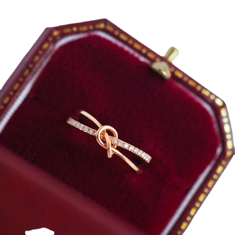 Elegant Artistic Dense Inlaid Zircon Knot Double Layer Ring For Women