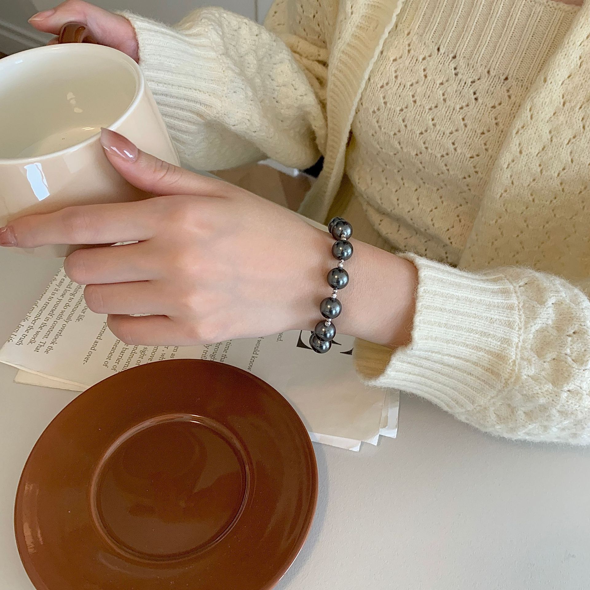Elegant Grey Pearl Bead Bracelet