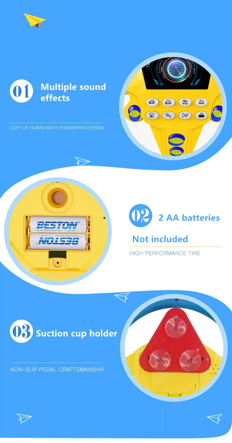 1. An interactive steering wheel with sound is a good way to increase imagination and pretend to playtime.