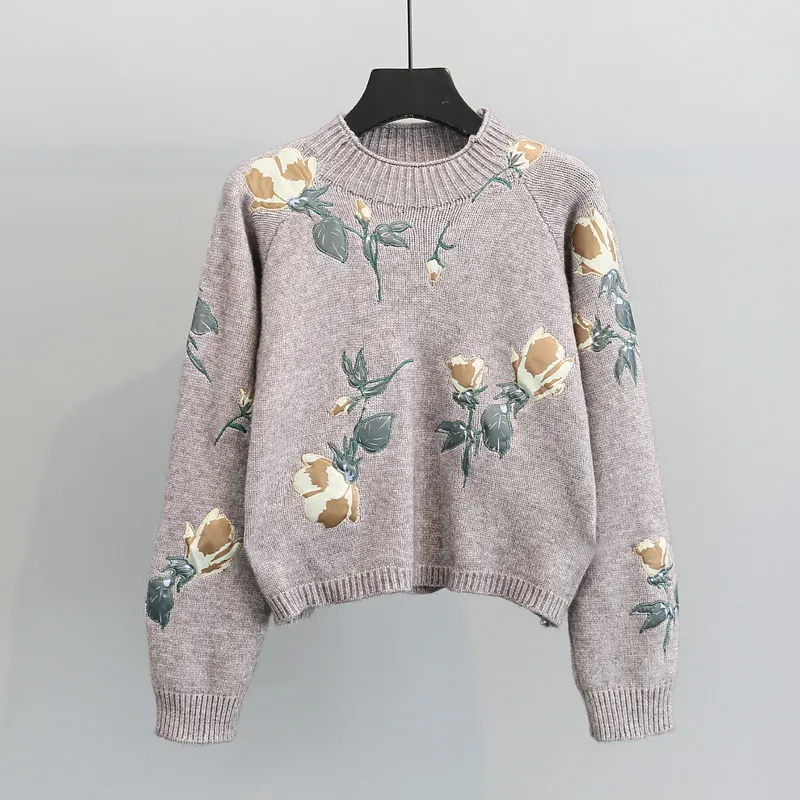Embroidered Flowers Small Pullover Sweater – Stylish, Cozy, and Elegant