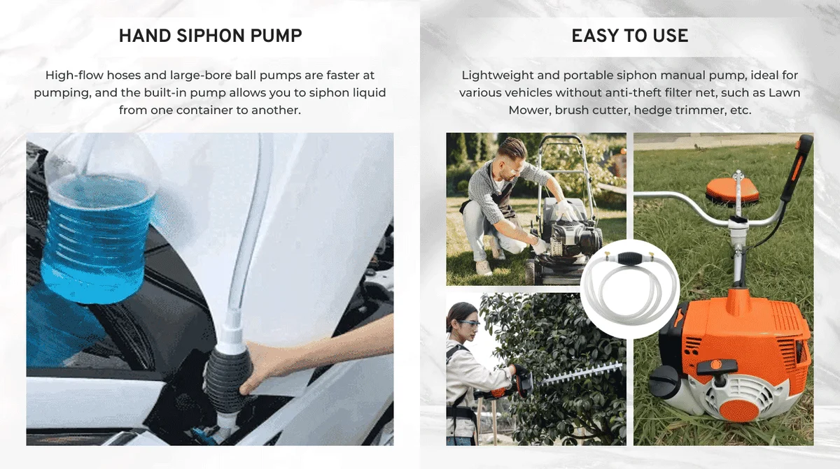 Ideal for emergency gas transfer, it can transfer any liquids like gasoline, oil, water, beer, and so on. A good tool at home for