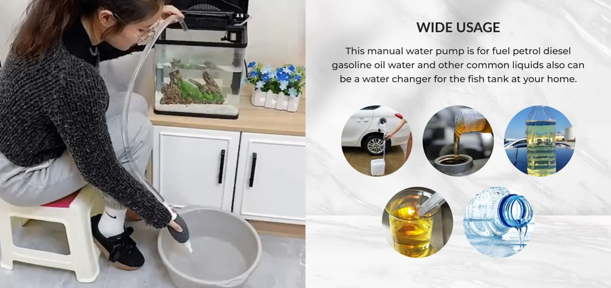 Ideal for emergency gas transfer, it can transfer any liquids like gasoline, oil, water, beer, and so on. A good tool at home for