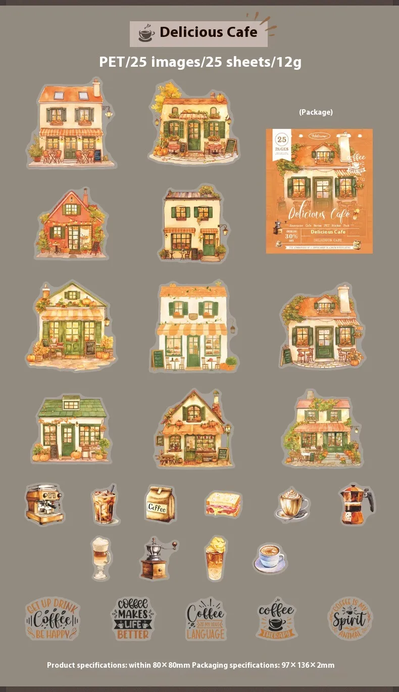 With a variety of designs, this package is ideal for crafting, journaling, decorating planners, and gift embellishments. Add a touch of personality to your everyday notes or make your gifts more memorable with these charming, café-inspired stickers.