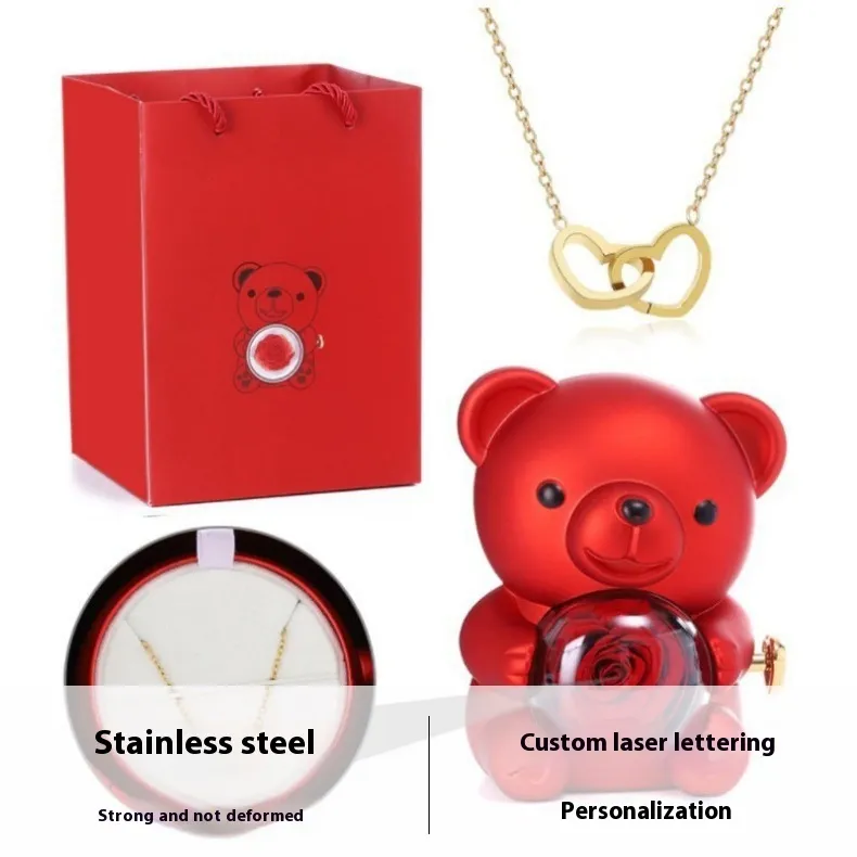 Engraved Double Heart Necklace Simple Rose Gift Set