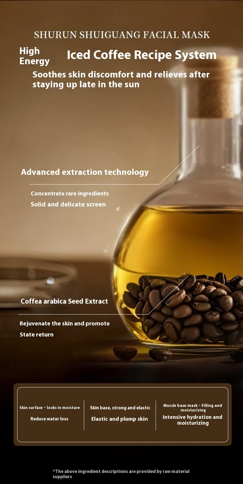 Energizing Skincare: Iced coffee extract is rich in antioxidants, helping to protect the skin from environmental stressors.