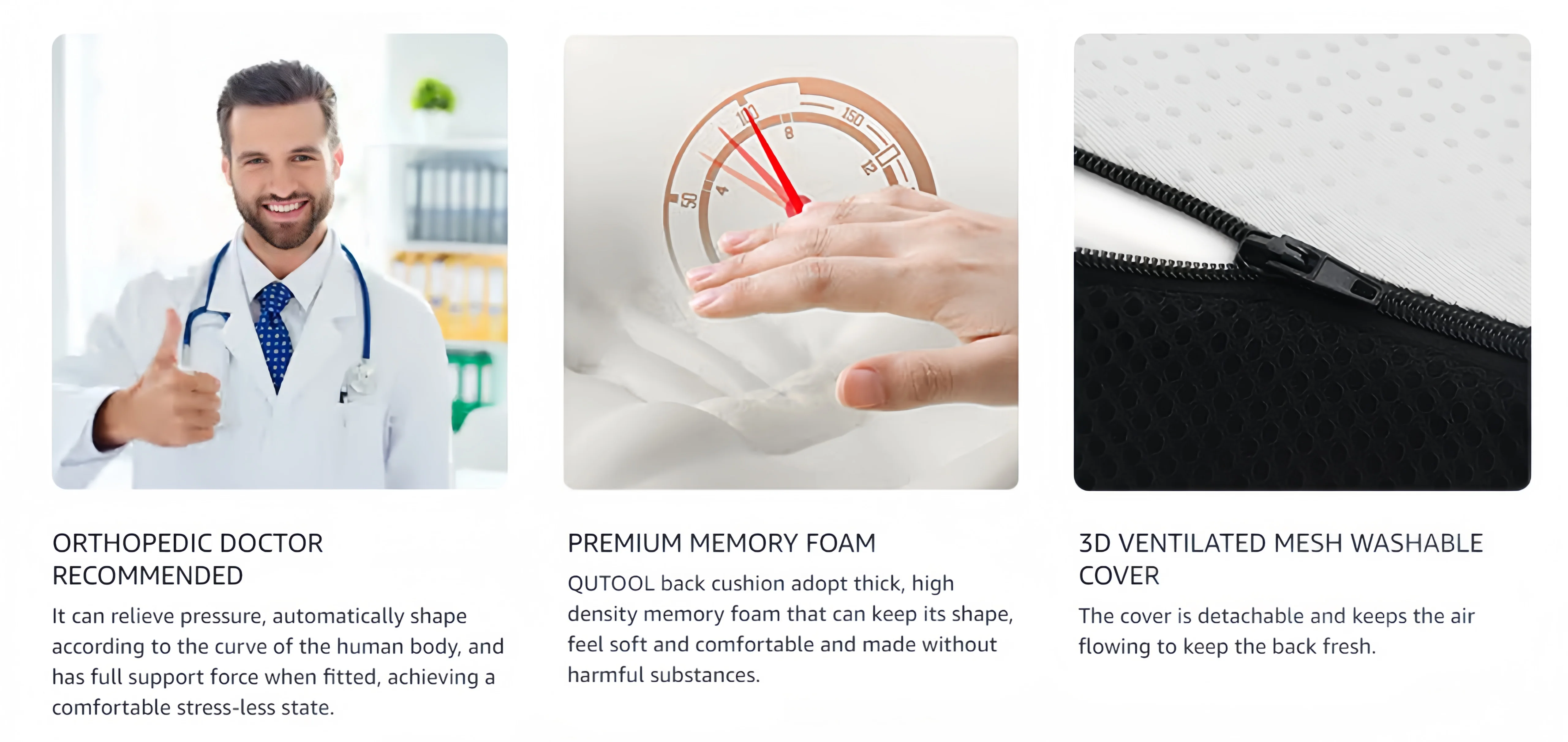 - Back Pain Relief: Alleviates discomfort caused by prolonged sitting.