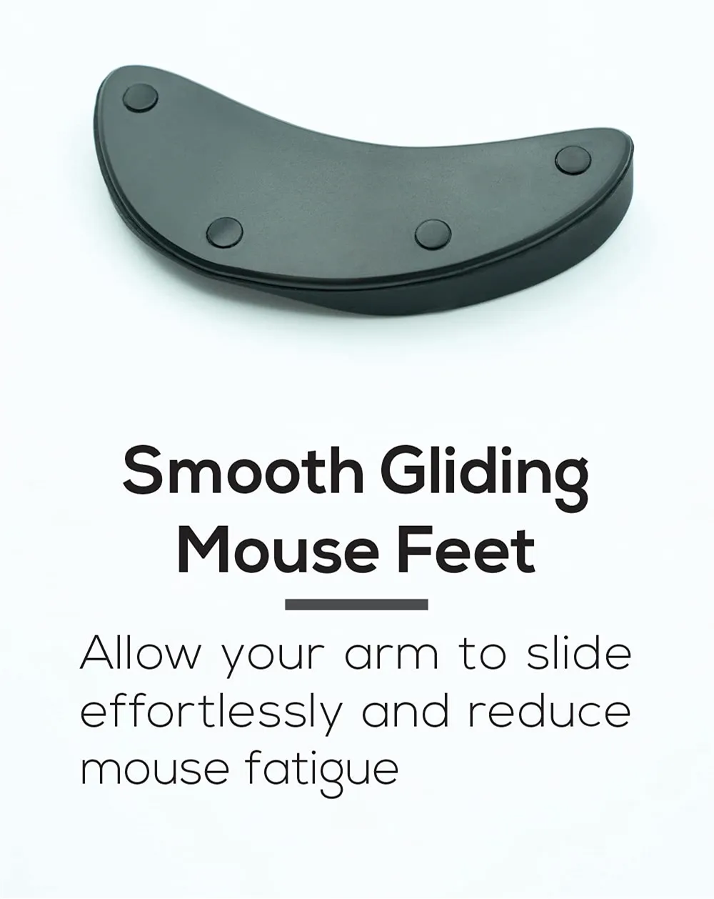 We've made this upgrade to this mouse's feet so that it can move freely while working or gaming. Compared to a still wrist rest mouse pad
