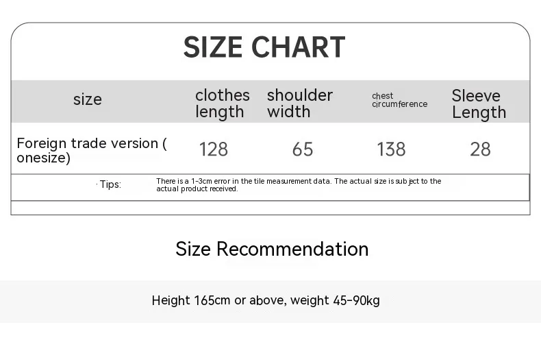 Size: One size (recommended to exceed 160cm,90kg-180kg)