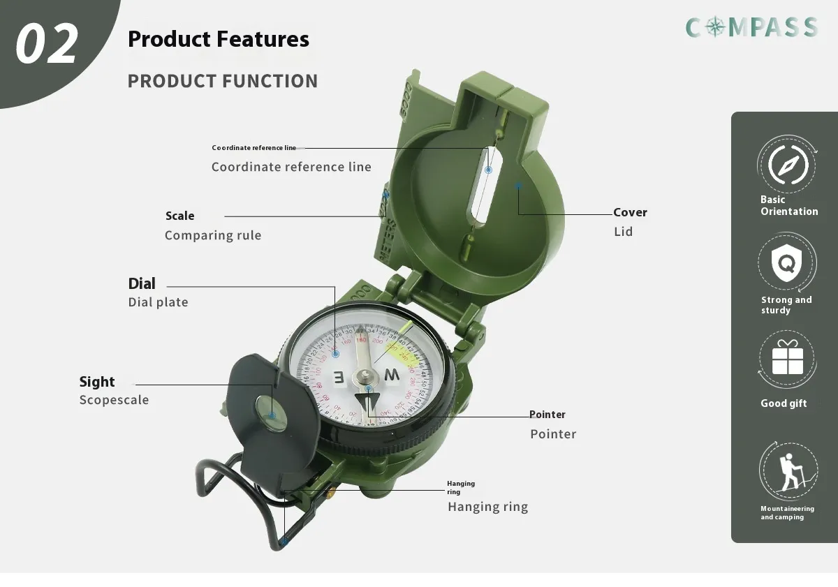 reliable navigation, this compass ensures you can find your way, whether you’re trekking through the wilderness, hiking in the mountains, or