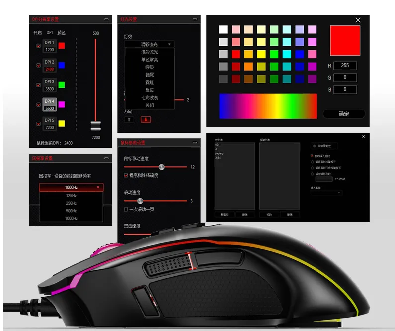 Color: Black [7200dpi macro programming RGB] send mouse pad