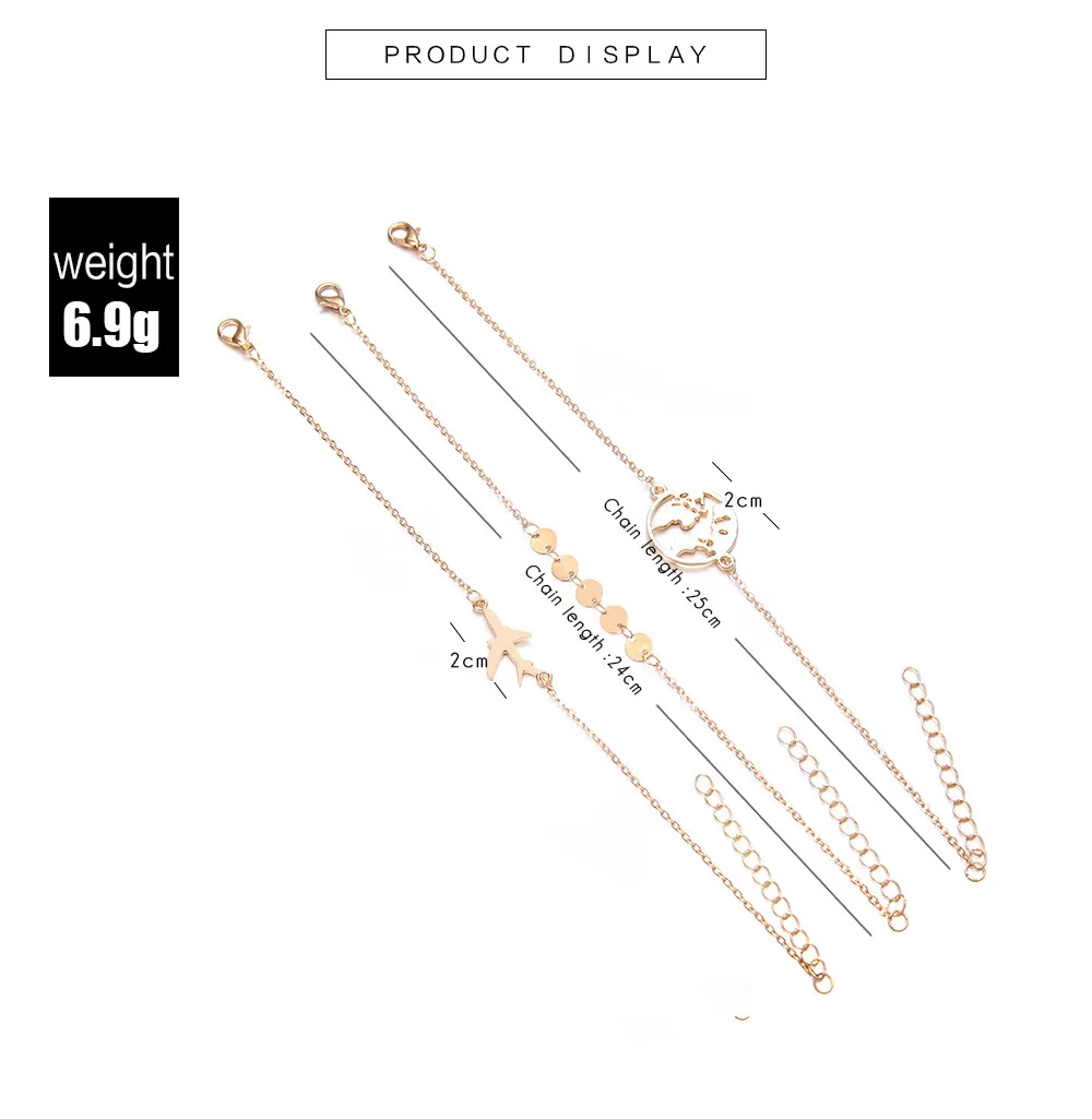 Elevate your accessory game with the European and American Bohemian Aircraft Map Charm Bracelet 3-piece Set, designed for New Zealand women who love travel-inspired, eclectic, and fashion-forward jewelry. This set combines charm, versatility, and bohemian flair for a truly unique statement.
