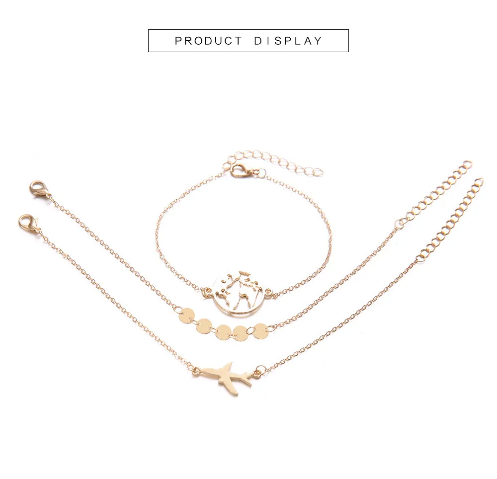 European And American Bohemian Aircraft Map Charm Bracelet 3-piece Set For Women