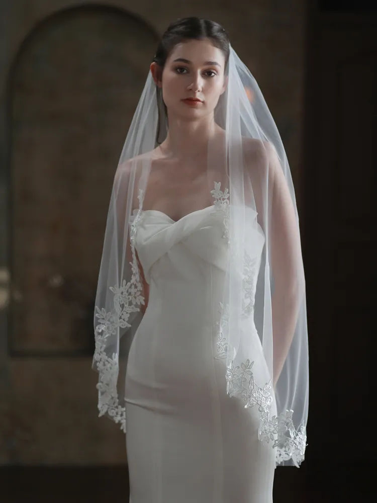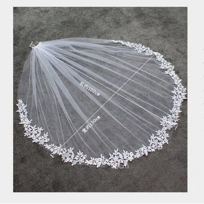 European And American Bride Veil Women's White Single Layer Lace Headdress