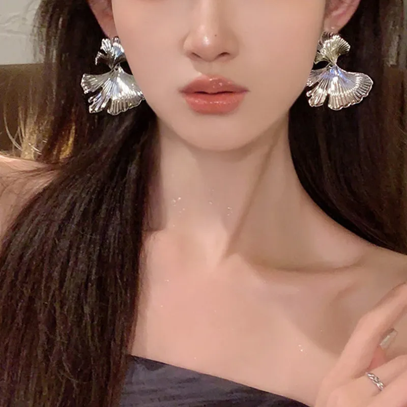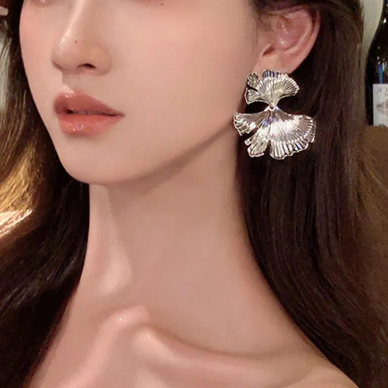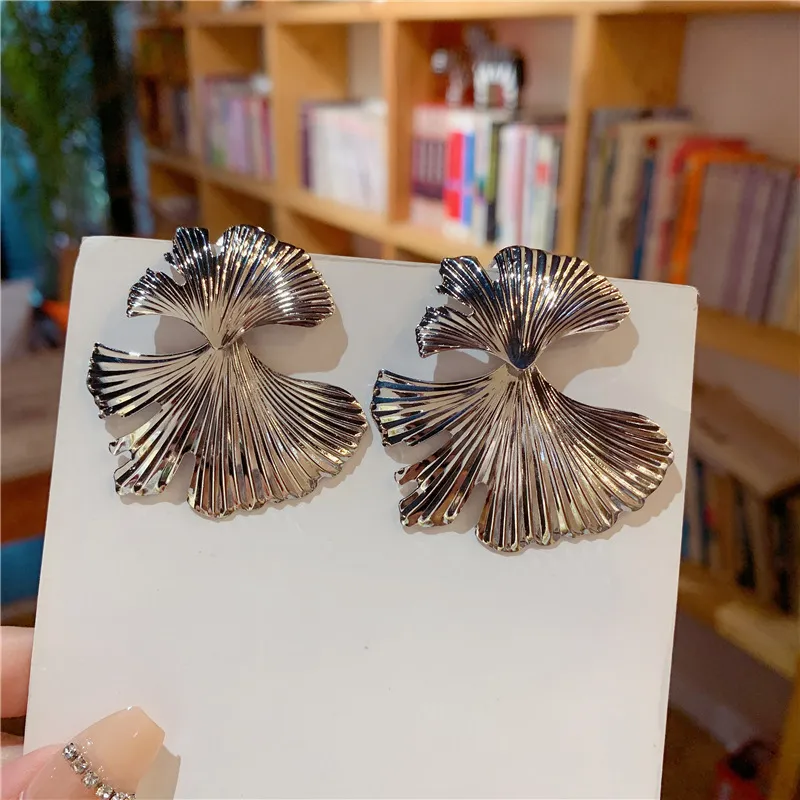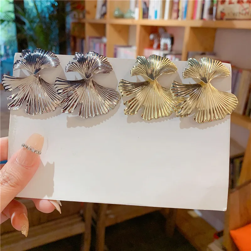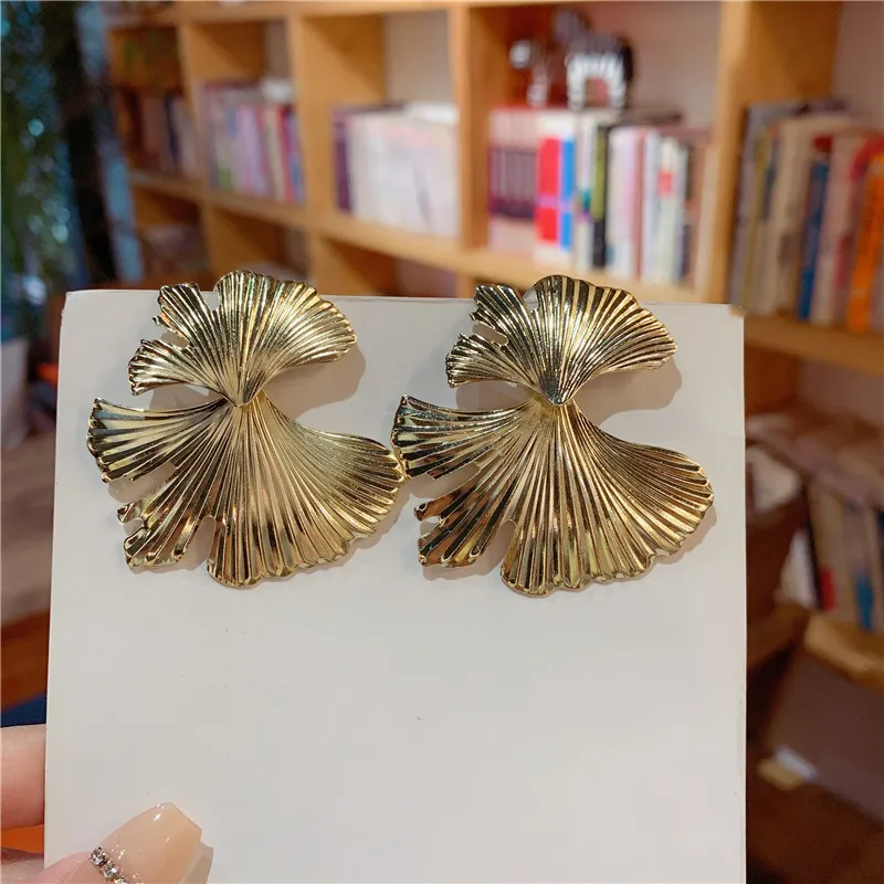 European And American Exaggerated Design Ginkgo Leaf Earrings