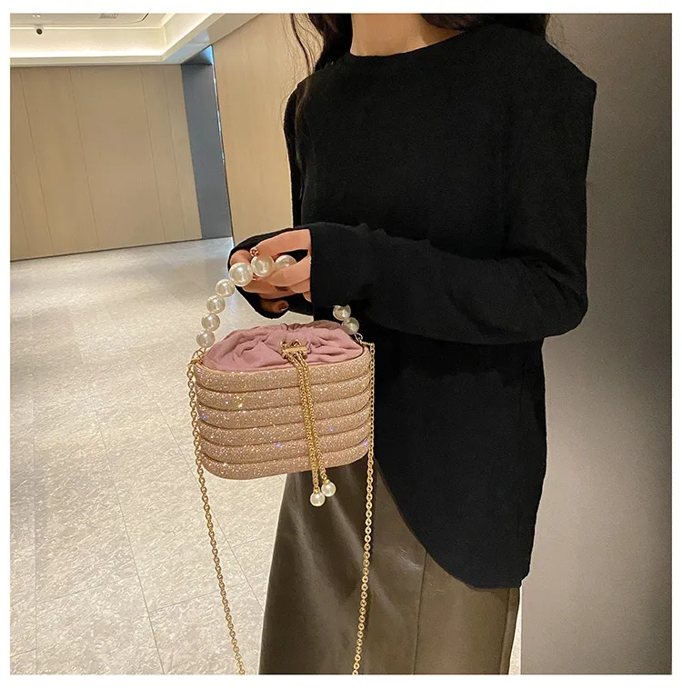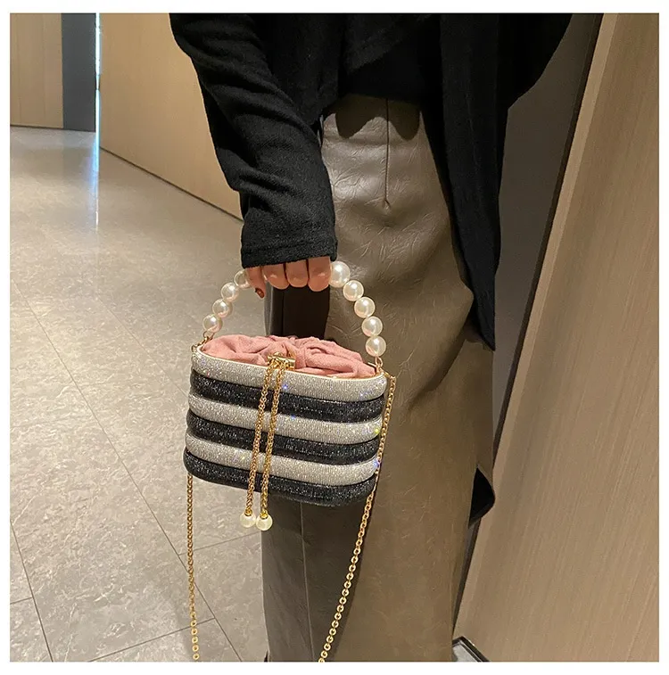 European And American Fashion One-shoulder Ins Women's Crossbody Classic Style Pearl Hand Dinner Bag