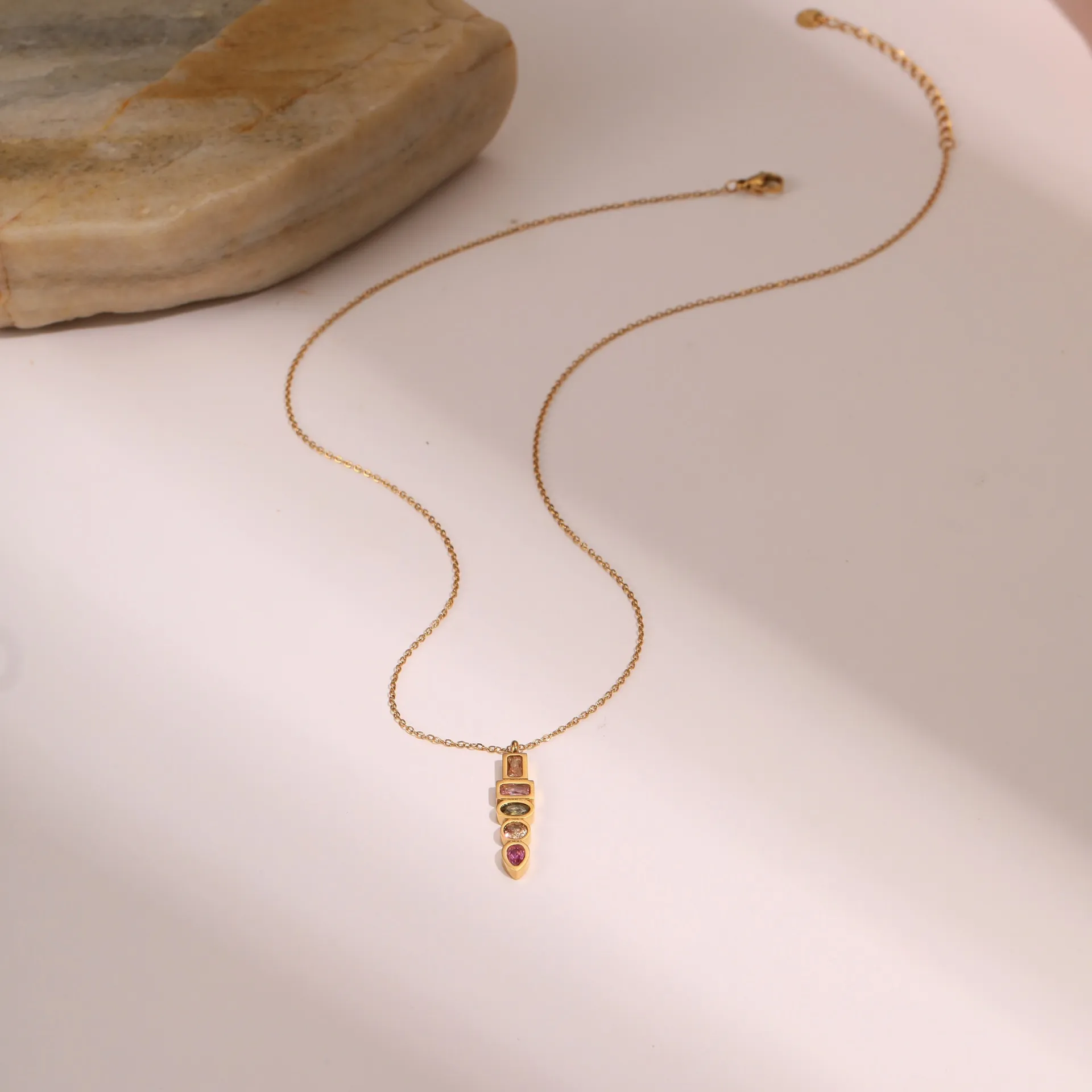 European & American Color Zircon Star Pendant Stainless Steel Necklace
