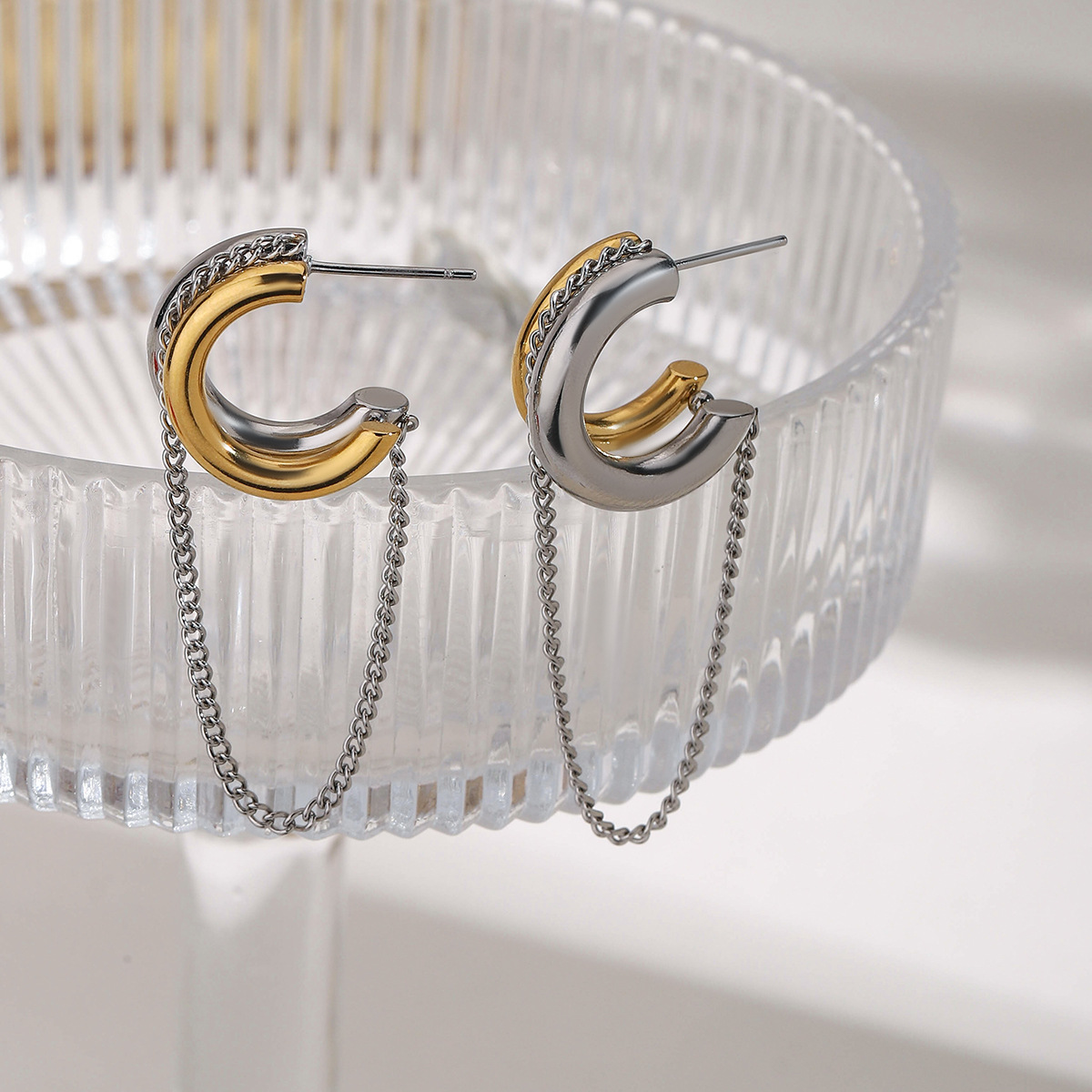 European And American Ins Titanium Steel Gold And Silver Color Matching Tassel Lines Simple Fashion Non-fading Earrings