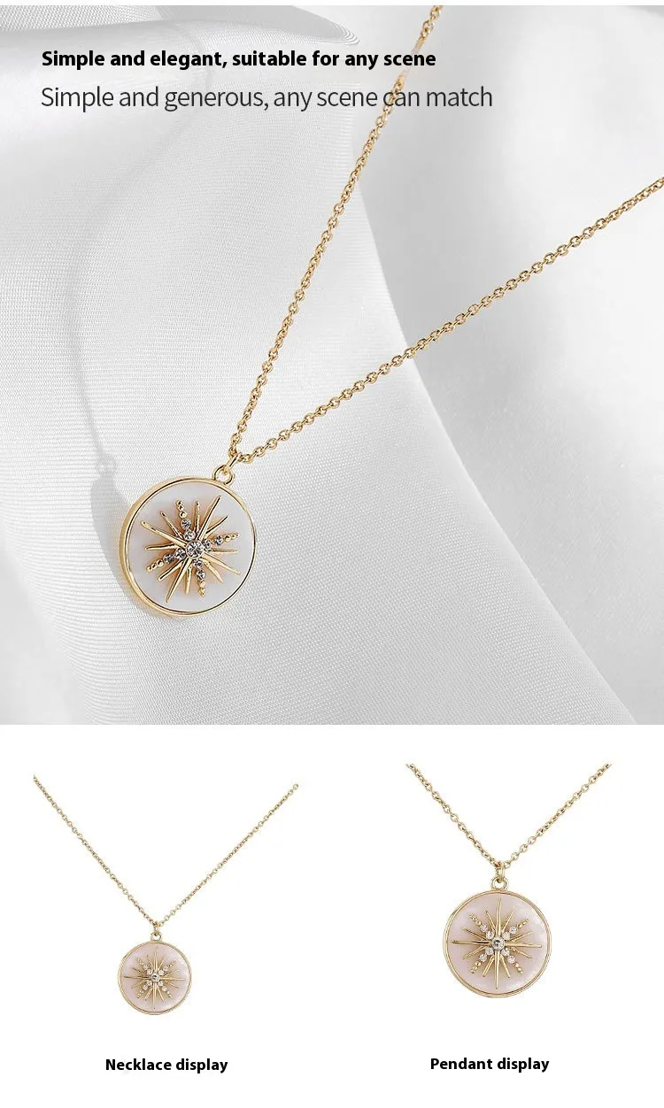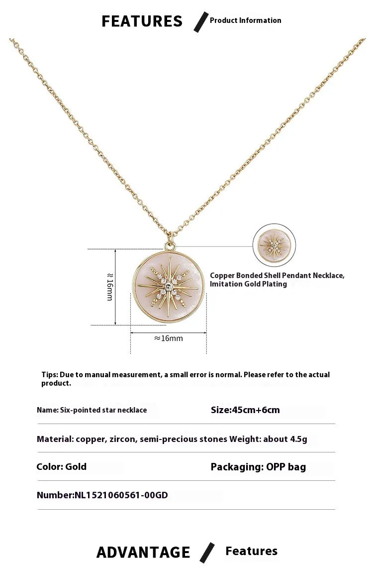 European And American Modern White Six-pointed Star Fritillary Compass Necklace