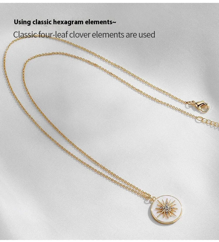 Whether you're celebrating a special occasion or simply adding a touch of elegance to your everyday attire, the European and American Modern White Six-Pointed Star Fritillary Compass Necklace fits seamlessly into any wardrobe. The simple yet striking design means it works just as well for a day at the office as it does for an evening out.