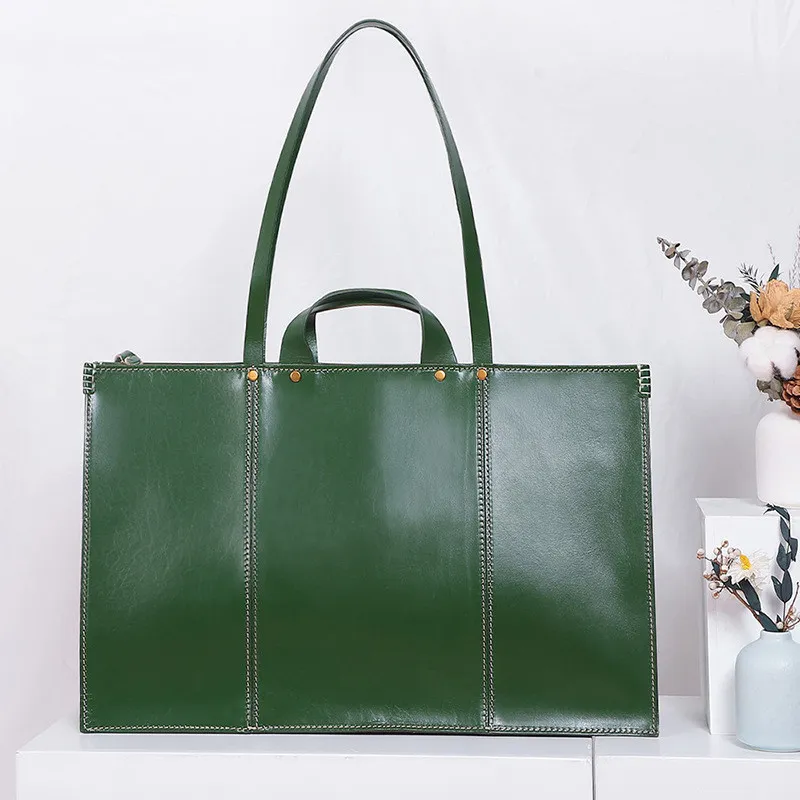 European And American Retro Handbags Vegetable Tanned Leather Large Capacity