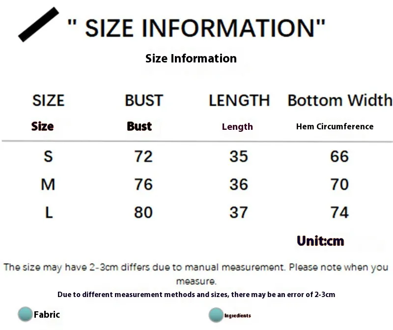 allow 2-3cm differences due to manual measurement. 2. Please check the size chart carefully before you buy the item, if you don't know how