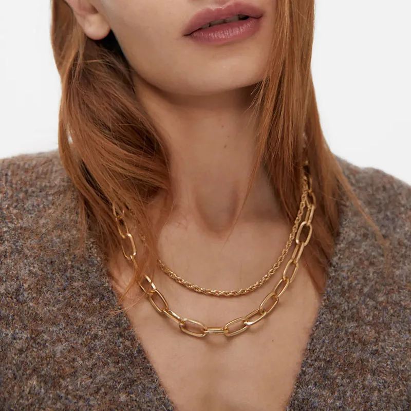 European And American Simple And Exaggerated Metal Punk Multilayer Necklace Ins Trend Simple Gothic Clavicle Chain Jewelry
