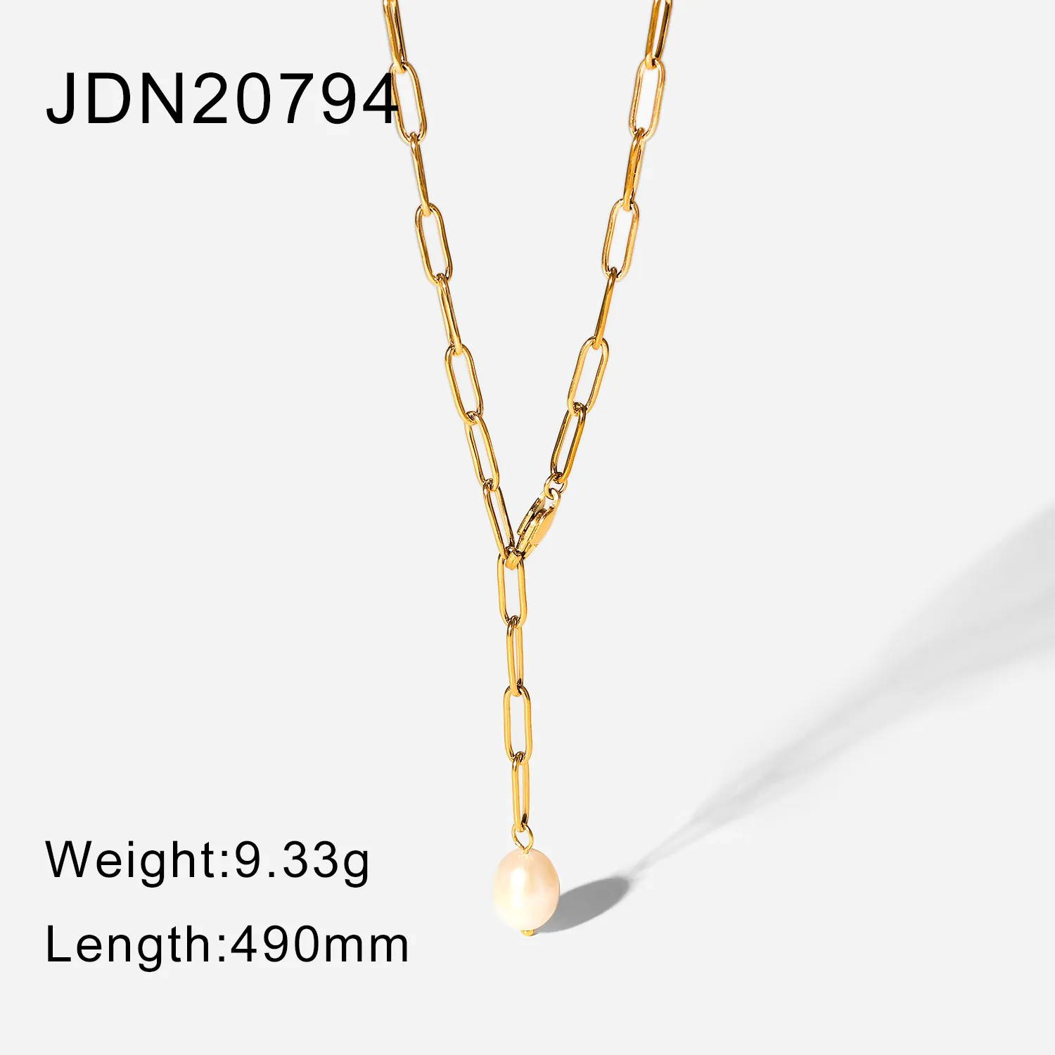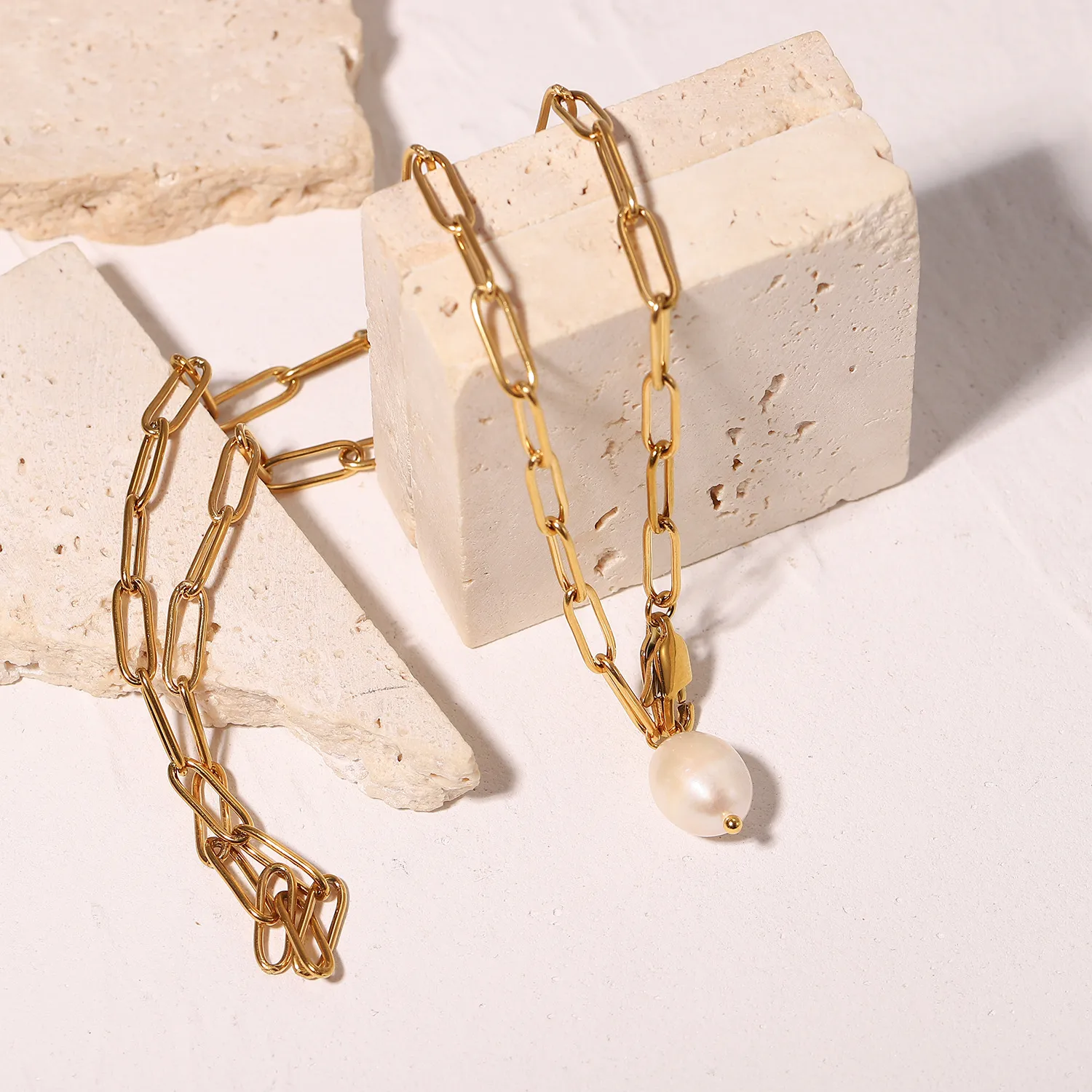 European And American Stainless Steel Clip Chain Pearl Necklace