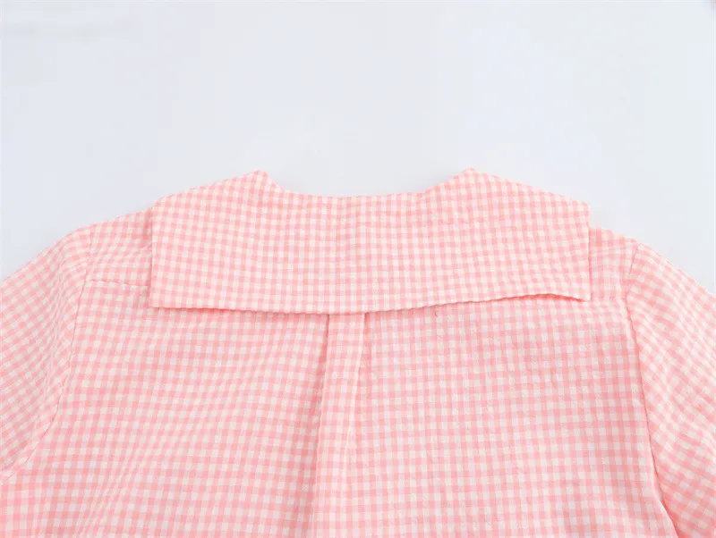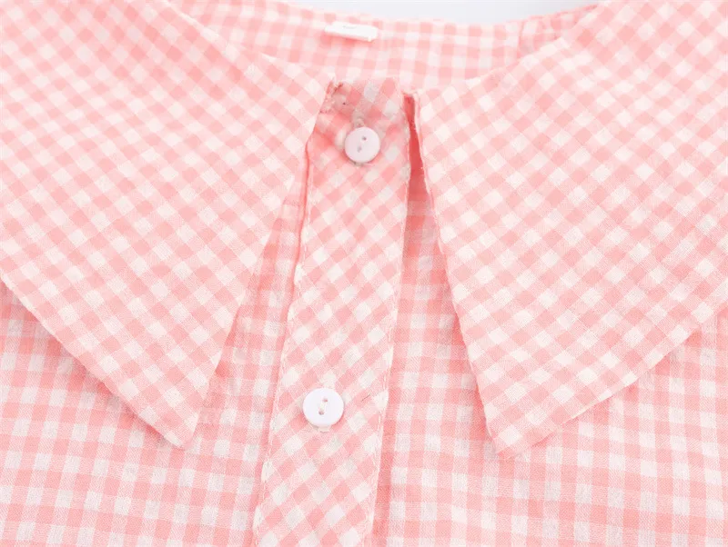 European And American Style Fashion Small Round Lapel Plaid Shirt