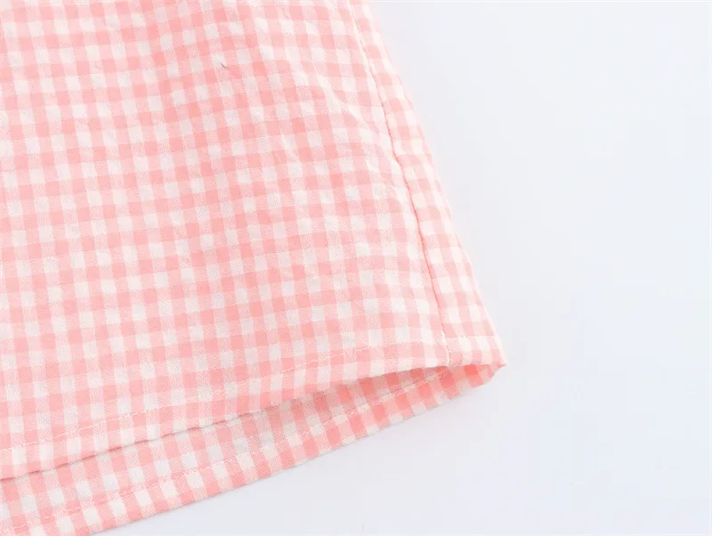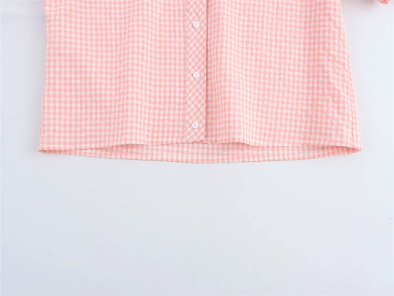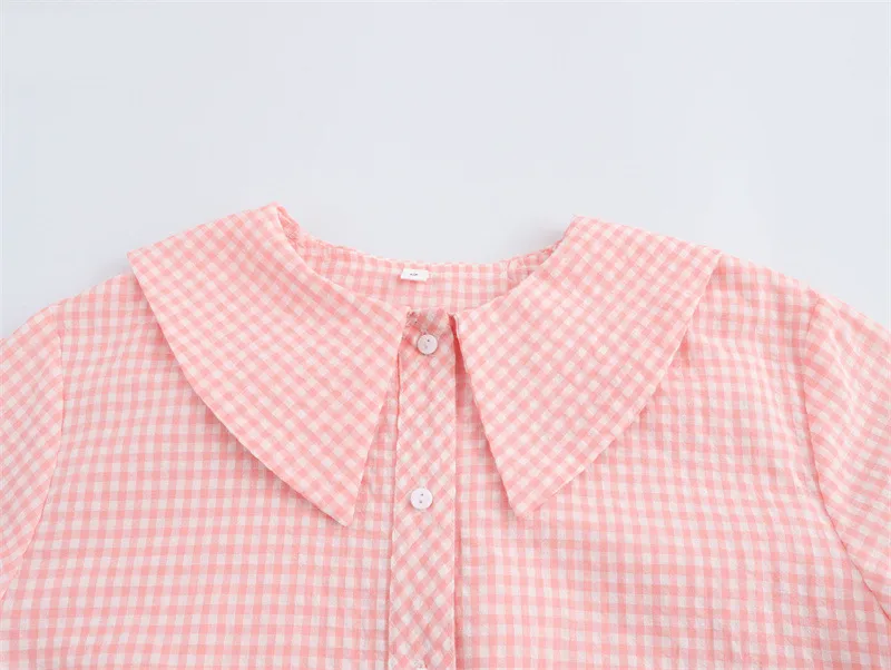 European and American Style Fashion Small Round Lapel Plaid Shirt