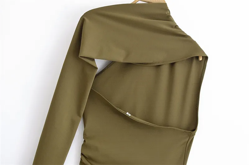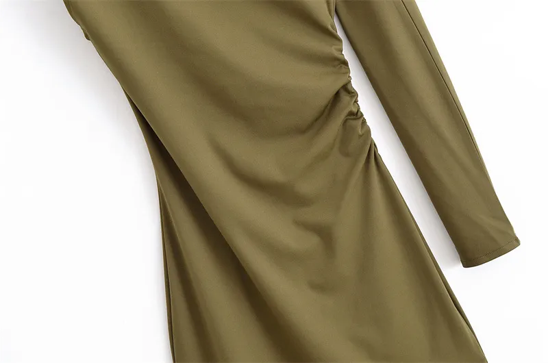 Crafted from premium fabric, this dress offers a smooth and flattering fit that enhances your figure. The pleated decoration gives the dress a sense of movement, making it both elegant and visually dynamic. The asymmetric length creates a dramatic effect, elevating your overall look and ensuring you stand out with effortless style.