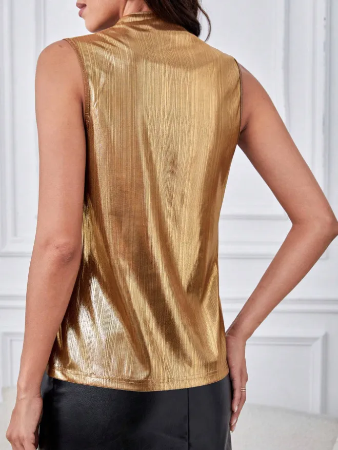 Timeless Design with a Modern Twist: The combination of a classic V-neck with metallic fabric offers a fresh take on a