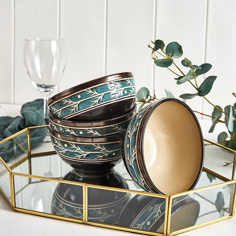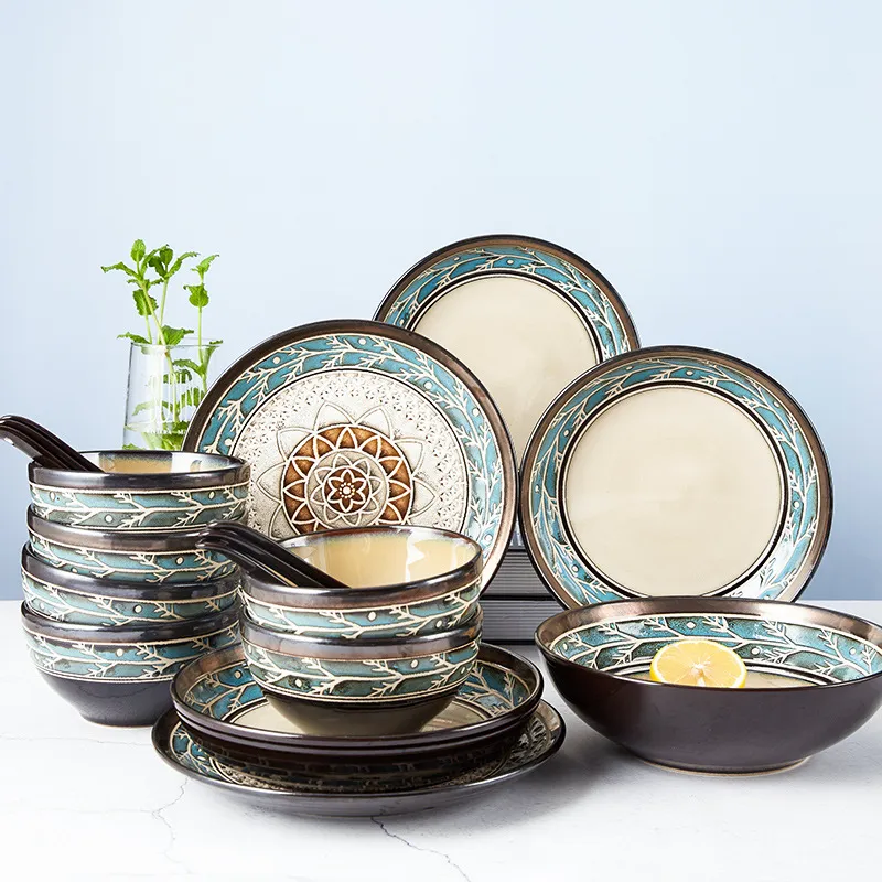 European Style Embossed Bowl And Plate Ceramic Tableware Set