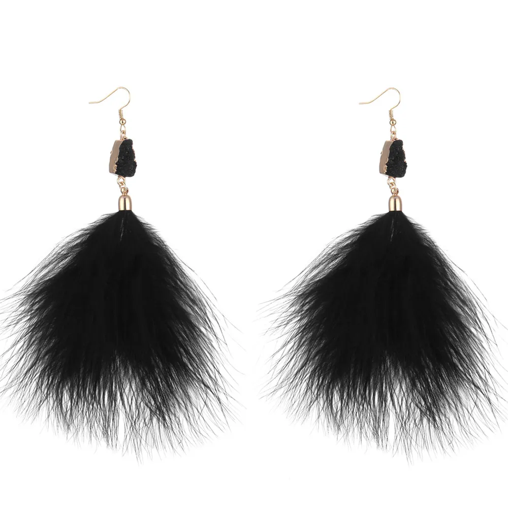 Exaggerated Feather Plush Earrings Luxury Temperament Ladies Earrings