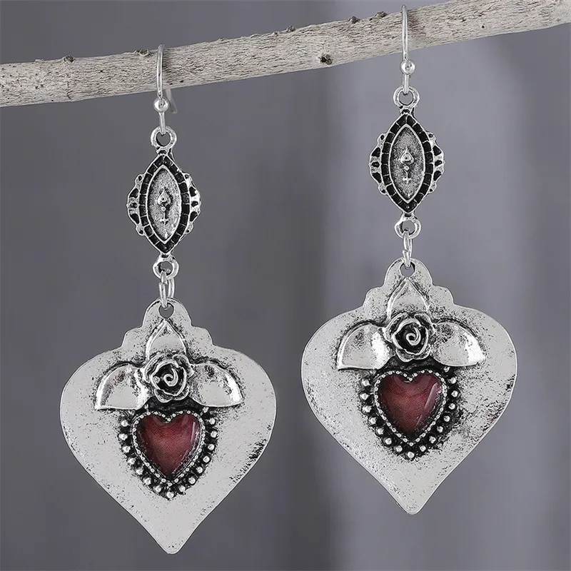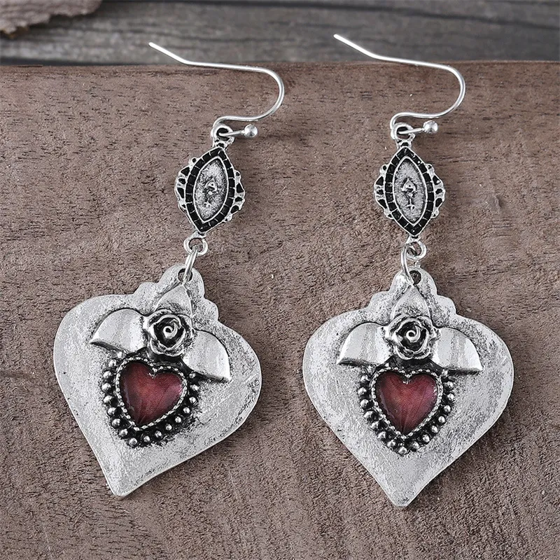 Exquisite Retro Rose Heart-shaped Pendant Earrings For Women