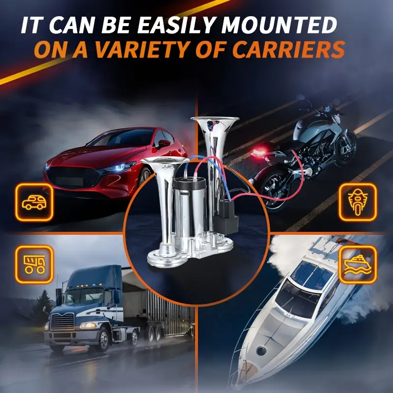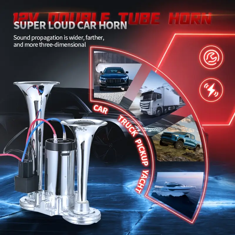 Extremely Loud Dual Horn Air Horn System Designed for 12V Vehicles