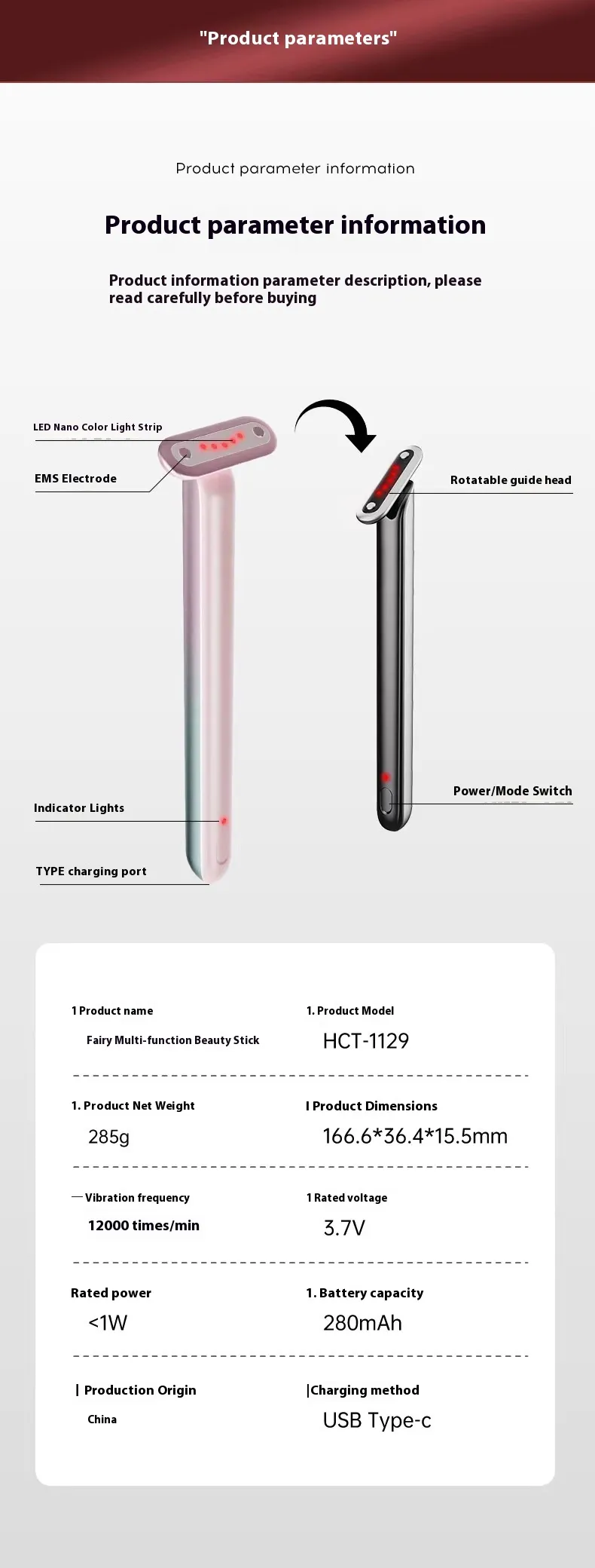 Function: wrinkle removal, color light
