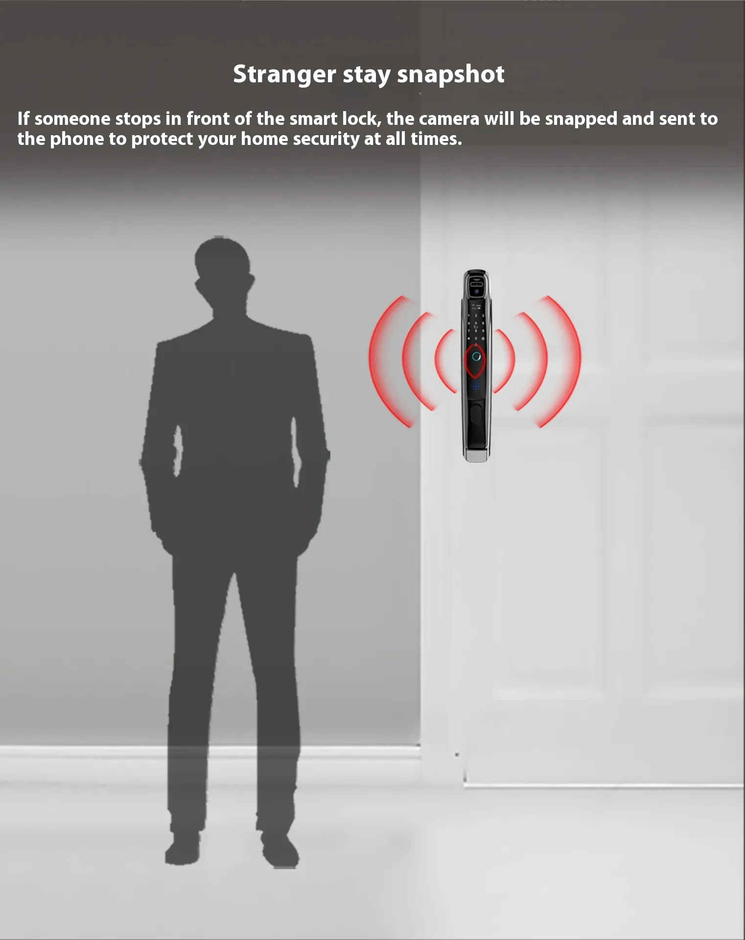 The lock uses sophisticated facial recognition technology to grant access, ensuring that only authorized individuals can enter your property. With its fast and accurate scanning capabilities, the system quickly recognizes registered faces, providing an efficient, touch-free way to unlock doors. This biometric system adds a level of convenience and security that traditional keys or keycards cannot match.