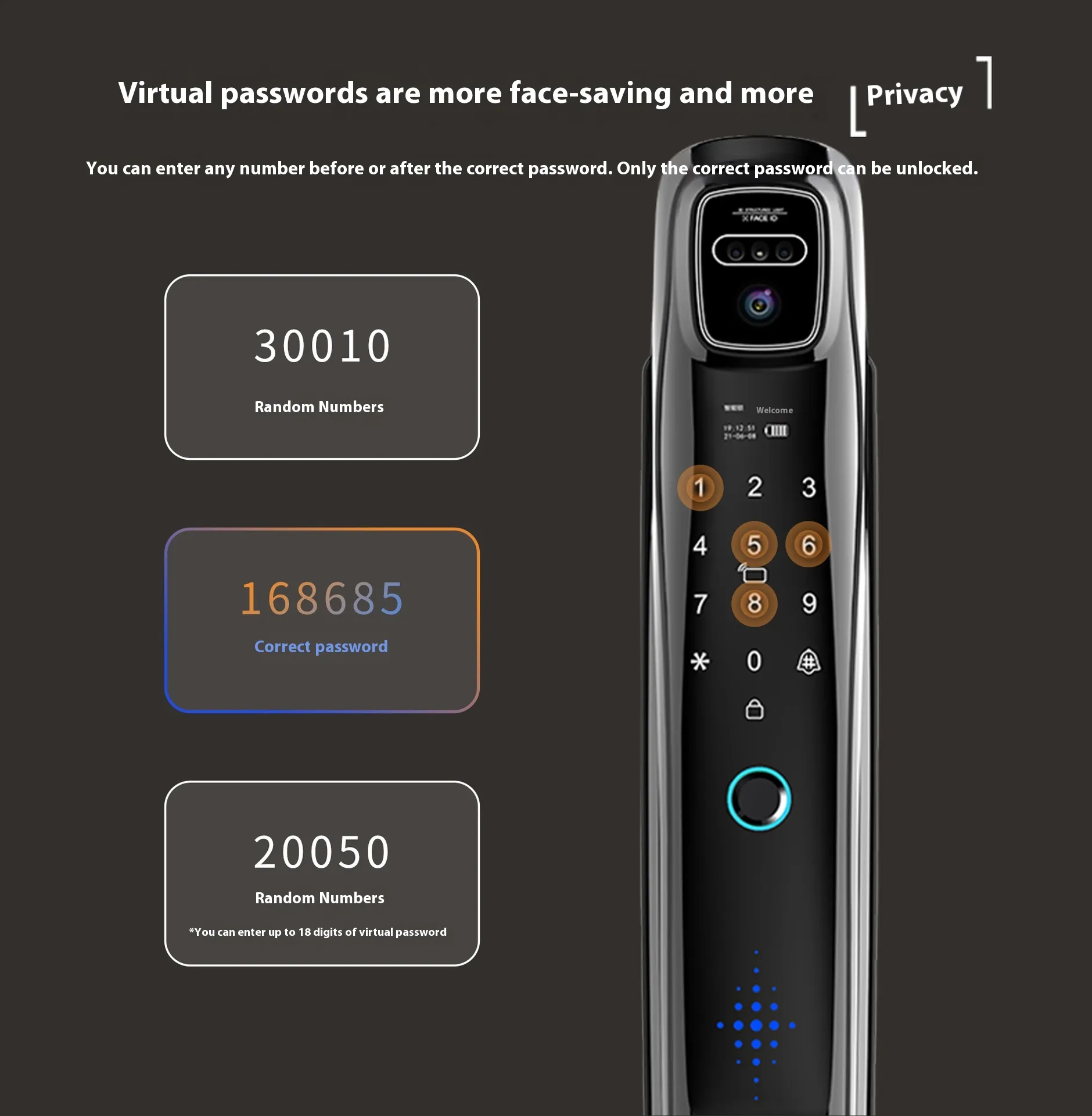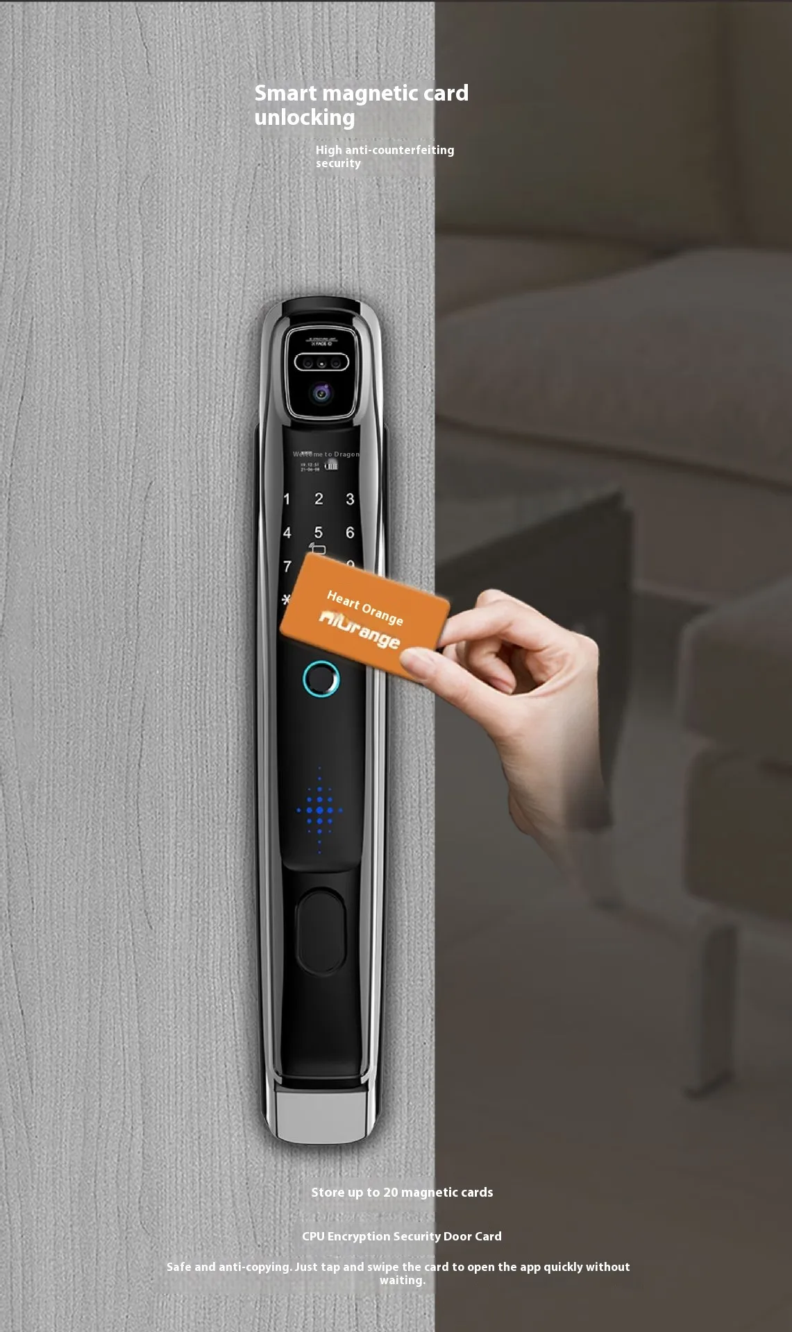 For added versatility, the lock also features intelligent fingerprint recognition. Simply scan your fingerprint to unlock the door, making access even quicker and more secure. This dual-mode security system gives you the flexibility to choose between face recognition or fingerprint access, depending on your preferences or security needs.