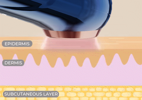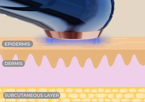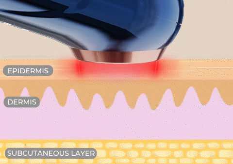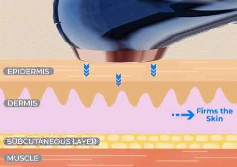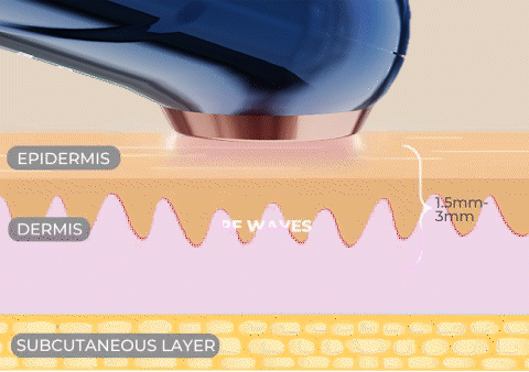 RF, also known as radio frequency waves, warm & penetrate the dermal layer up to 140°F to promote the remodeling & growth of collagen.