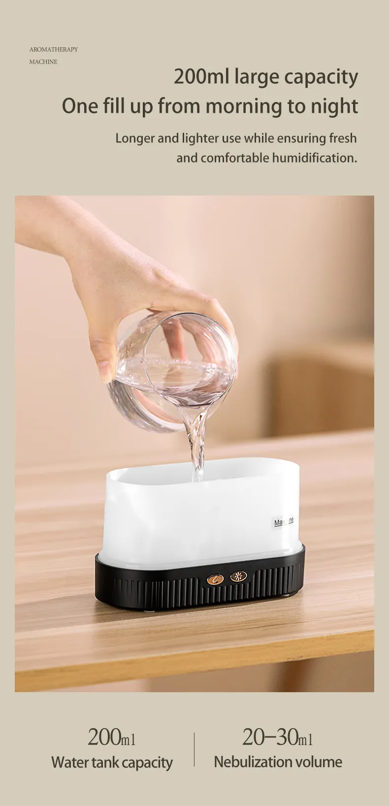 The flame-inspired light creates a soft, warm glow, perfect for creating a cozy atmosphere in any room. The combination of gentle lighting and soothing essential oils makes it ideal for unwinding after a busy day or setting the mood for a peaceful evening.