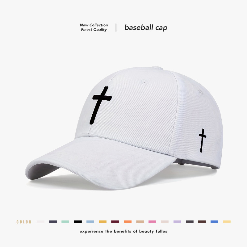 Crafted from high-quality materials, the Faith Icon Cap is available in versatile colors including classic black with a white cross, black with a red cross, and crisp white with a black cross. Each color variant offers a unique look, allowing you to choose the one that best complements your personal style.