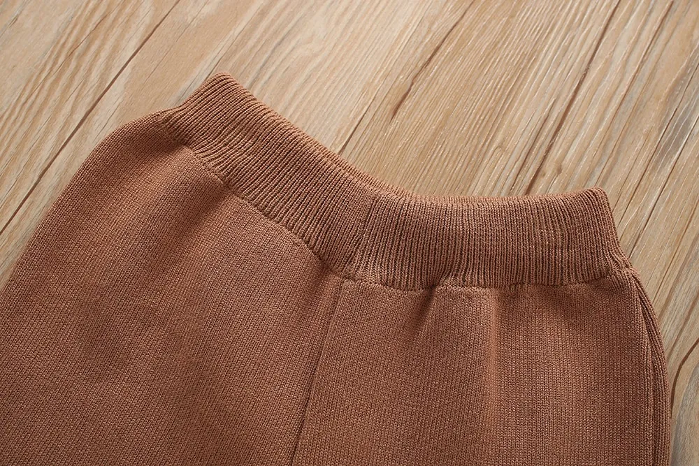 Knitted Pants: The pants in this set offer a comfortable, snug fit with a relaxed silhouette. They are designed to provide