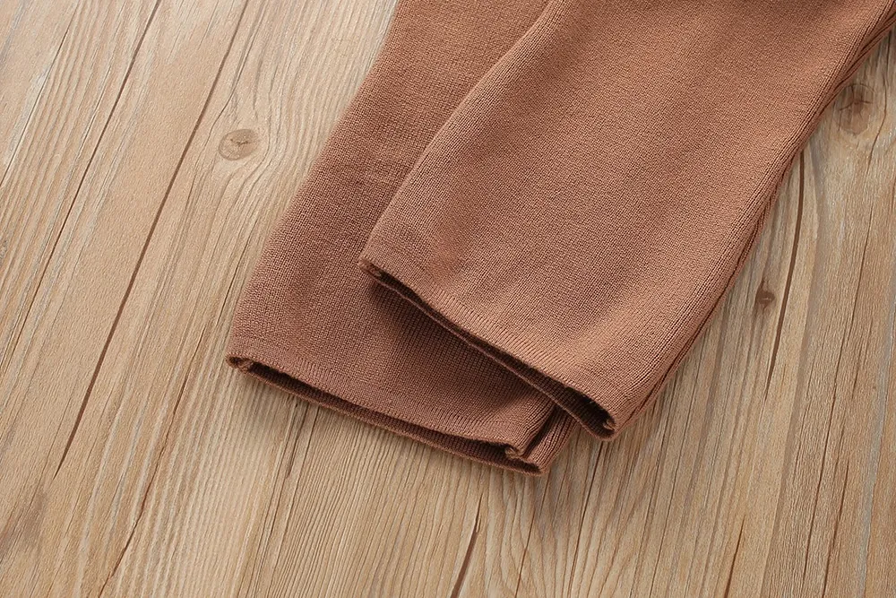 The Fake Two-Piece Knitted Long-Sleeved Two-Piece Pants set combines the visual appeal of a two-piece set with the comfort and simplicity of a single-piece design. The knitted fabric ensures that the outfit is soft, stretchy, and breathable, providing a perfect fit that feels great against the skin.